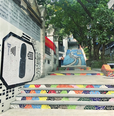 随着天气转晴,春天的气息扑面而来。联通枣子岚垭和中山二路的老步道也迎来了“春天”,披上了新装,并有了一个好听的名字——枣子岚垭时光里步道。记者看到,步道台阶外延增添了精美的涂鸦,从下往上看,绘成了“轻轨穿楼”“索道”等我区独特景观。墙面更是独具匠心,将不同年代有代表性的通讯设备进行了展示。沿着步道阶梯拾级而上,就如同坐上了“时光机”,在新旧之间自由穿梭。