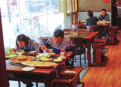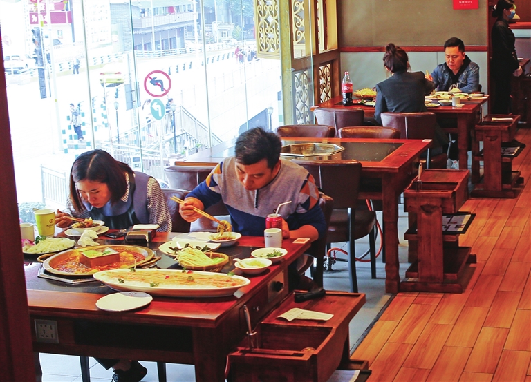 在巴人红鼎火锅作坊白象街店,记者看到,到店顾客需完成“渝康码”扫码、体温测量、身份信息登记、消毒等一系列防控措施后,才被允许进入店内。“除了服务好到店堂食的顾客,我们还积极拓展线上外卖业务。”店长熊金花介绍,目前门店正通过网站、微信公众号等渠道,积极推广外卖业务,并推出多个线上“乐享美食套餐”,满足消费者不同需求。