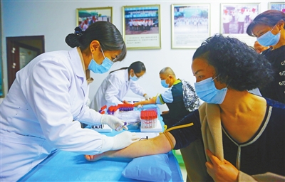 本次体检项目包含血液分析(血常规)、肝功、肾功、血脂、肿瘤、彩超、心电图、DR、内科和外科等10余个项目。12日早上8点刚过,职工们就陆续来到体检场地,签到、领表、排队、体检。
