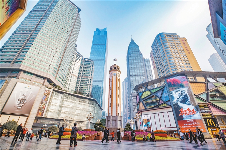 以解放碑为中心的中央商务区高楼林立。记者 王 欢 摄
