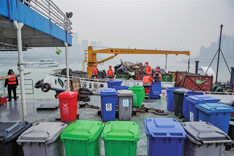 能够清理大量垃圾,与清漂作业的机械化是分不开的。“大船主要负责大面积清漂,小船负责打捞零散垃圾漂浮物。”重庆市水域环境有限公司生产安全管理部杨主任介绍,目前重庆环卫集团共配置新型机械化清漂船、自动化保洁船、工作趸船、船舶废弃物接收船等13艘,大大提高了工作效率。