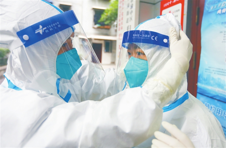 (下转2版) (上接1版)负责核酸采样、“追阳”等防疫工作。取管、扫码、采样、封存、消毒……简单的几个动作,医务人员每天都要重复上百次。密不透风的防护服,被汗水打湿的内衬,口罩勒出的道道深痕,细微之处彰显医者担当。他们用专业技术、无言坚守,构筑起了一道道坚实的防疫屏障。