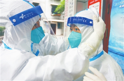 (下转2版)  (上接1版)负责核酸采样、“追阳”等防疫工作。取管、扫码、采样、封存、消毒……简单的几个动作,医务人员每天都要重复上百次。密不透风的防护服,被汗水打湿的内衬,口罩勒出的道道深痕,细微之处彰显医者担当。他们用专业技术、无言坚守,构筑起了一道道坚实的防疫屏障。