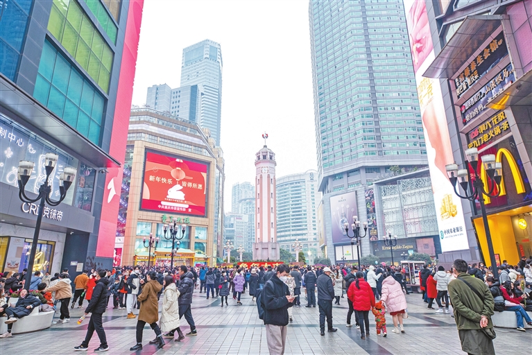 节日氛围离不开各类促销活动。春节期间,区商务委抢抓消费黄金节点,开展了百万消费券惠民活动,面向成渝地区市民发放120万元的消费券,春节期间可在解放碑、大坪、化龙桥等主要商场、购物中心、特色街区和零售门店使用。截至1月27日,已核销近万张消费券,直接消费撬动率为1:6.7。同时,以“开新渝中 喜乐趣购”为主题,联动30余家卖场、近万个商家推出了丰富多彩的新春促销活动。