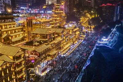 漫步解放碑步行街打卡拍照,感受山城巷的老城区风貌,看一场精妙绝伦的演出……渝中的大街小巷洋溢着喜庆的氛围,持续升腾的浓浓“烟火气”年味十足。春节期间,大量市民、游客来到渝中各个热门景区景点打卡,感受山水都市的独特魅力,享受节日的祥和喜庆。