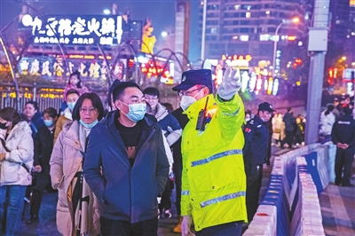 1月26日,渝中各大景区景点迎来人流高峰,服务在景区附近的交巡警们坚守岗位,守护一方平安。