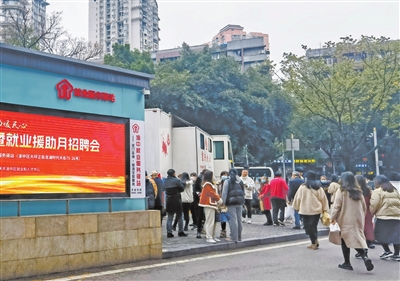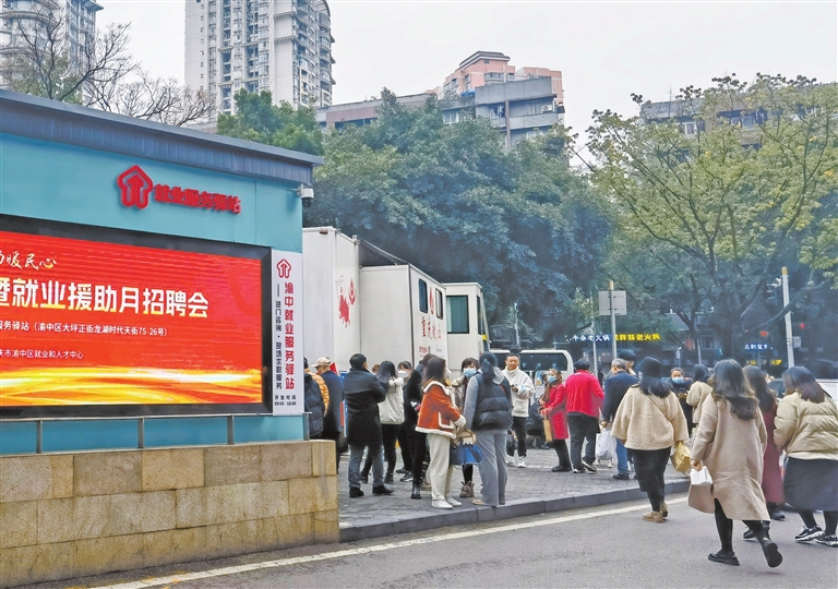 本报讯 (记者 姚延洋 通讯员 吴浩宇)“没想到逛个街还能找工作!”2月21日,在龙湖重庆时代天街A馆大门外,渝中区就业服务驿站(零工驿站)开展了一场小型招聘会。张女士在购物途中看到本次招聘活动,和企业HR进行了一次面对面的沟通。