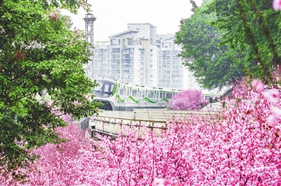 随着气温逐渐回暖,渝中半岛春意盎然,花开正浓。在轨道交通2号线佛图关段,“开往春天的列车”已上线。暖阳下的美人梅竞相绽放,列车穿行花海,成为山城一道靓丽的风景线。