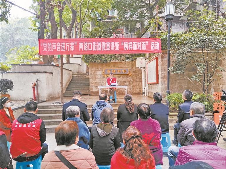 本报讯 (记者 姚延洋)日前,“党的声音进万家”两路口街道微宣讲暨“榜样面对面活动”在两路口街道桂花园新村社区“百姓讲坛”开讲。