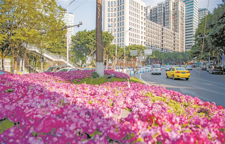 本报讯 (记者 晏艳辉)日前,记者从区城管局获悉,为进一步提升城市颜值,美化市民出行环境,我区在中山四路沿线“上新”5万余盆当季鲜花,让市民、游客推窗见景,不出远门就能欣赏百花绽放的景象。
