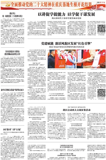 近年来,南纪门街道坚持以党建为引领,依托三个传统风貌区资源优势,先后组建十八梯、山城巷、白象街三大传统风貌区功能型党委,成立项目、物管、居民网格等党支部10个,有效扩大基层党建集群效应,推动三大传统风貌区党组织建设与风貌区自身建设同步启动、同步发展、同步见效。