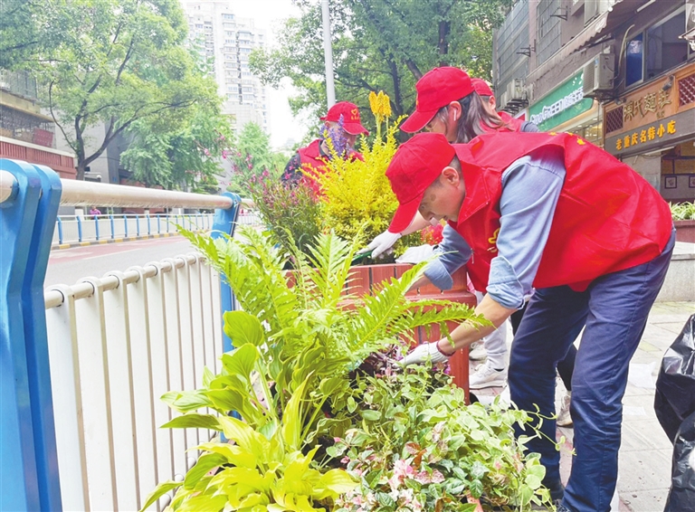 本报讯 (记者 黄清娴)日前,大溪沟街道人和街社区主干道的城市景观花箱“亮了”,100余名来自市设计院的党员、志愿者化身辛勤“园丁”,匠心雕琢这些花箱造景,路过的市民、游客纷纷停下脚步由衷地赞叹一声“好看!耐看!”