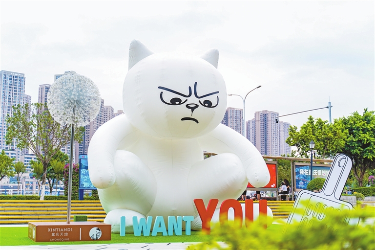浪漫广场的“有猫病”漫画展等你来捧腹一笑;钟楼广场上,蛮横的拦路猫和集体猫式伸展的瑜伽猫……生动地复刻了猫咪的灵动瞬间,还原猫咪的趣味日常。在重庆天地,猫咪会以各种花式的姿态与市民不期而遇。
