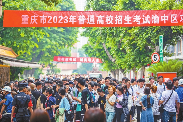 本报讯 (记者 刘侃)不负青春,不负韶华。6月7日,2023年高考拉开帷幕。3500余名渝中学子怀揣梦想,满怀信心走进考场,迎来这场专属于他们的“人生大考”,为梦想奋力拼搏。