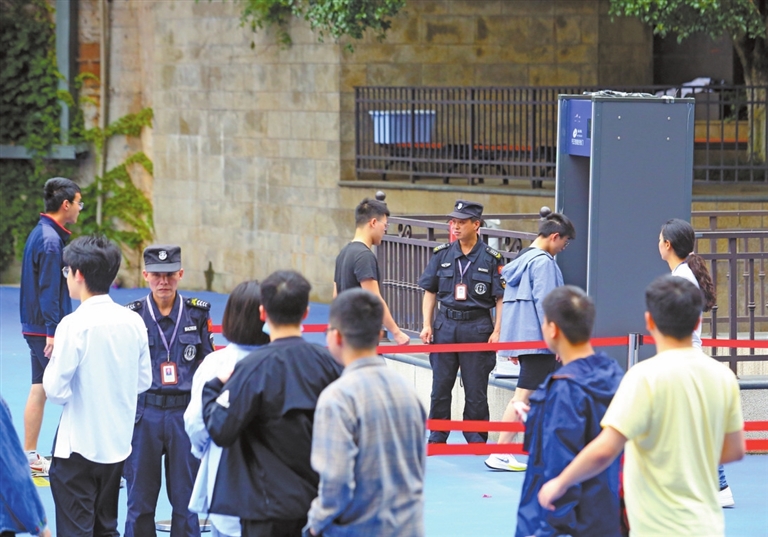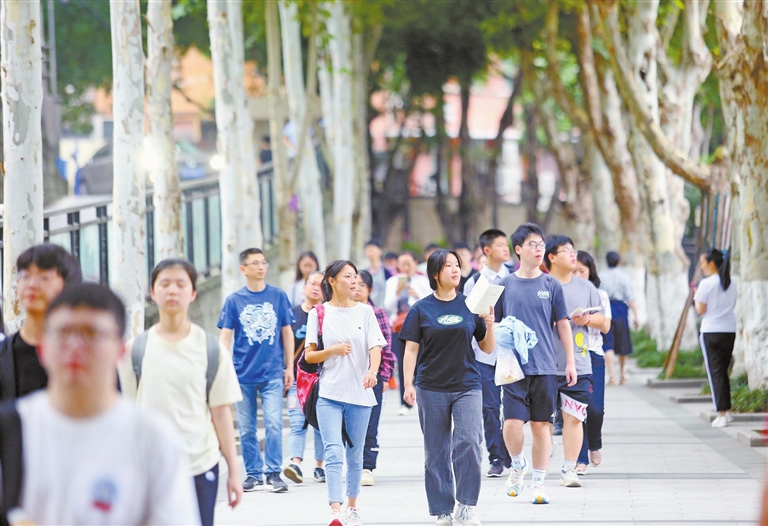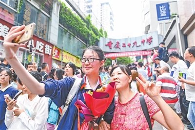 有人从容,有人紧张;有人兴奋,有人淡定……当同学们迈进考场那一刻,面前有拼搏与梦想,身后则有温柔的目光与冀盼。有家长远远地站在考场外目送孩子,眼中充满关切;有老师与同学互相击掌、加油鼓劲,传递着信心与力量。