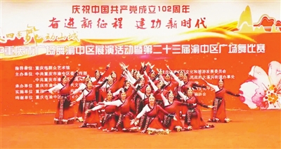 “奋进新征程 建功新时代”庆祝中国共产党成立102周年文艺汇演暨“欢跃四季·舞动巴渝”2023重庆市广场舞渝中区展演暨渝中区第二十三届广场舞比赛在人和街小学灵动体育馆举行,300余名群文爱好者载歌载舞,庆祝党的生日,展示渝中广场舞风采。