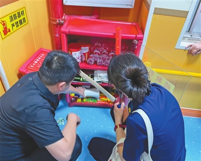 检查过程中,检查组对遮挡消火栓、灭火器,疏散引导箱内物品缺失、过期、数量不足,安全出口、主通道上堆放杂物等问题进行了现场指导,并要求其立即整改。