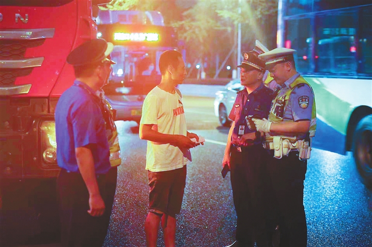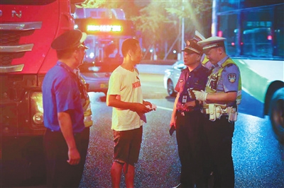 7月13日晚,由区交巡警支队牵头,会同区城管、区交通局、区生态环境局等部门,分别在经纬大道、菜园坝转盘等设联合检查站。行动中,各部门联动联勤,形成合力,重点对无证运输渣土、未按批准线路行驶、冒装撒漏、车身不洁、尾气超标等违法行为进行严查整治。