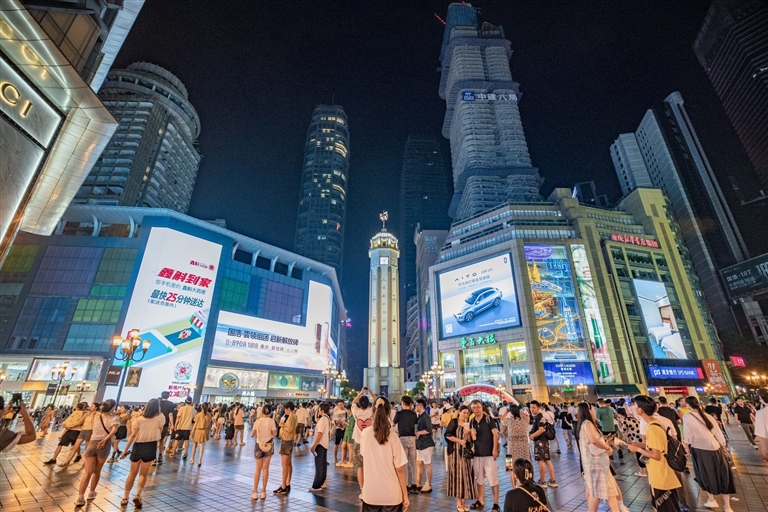 本报讯 (记者 廖松)今年暑期,全国旅游市场火爆,解放碑商圈吸引了大量国内外游客。近日,美团、大众点评发布数据,暑期以来全国“夜游”“夜市”搜索量较去年同期增长约80%,重庆解放碑、上海迪士尼、长沙五一广场、重庆观音桥、成都春熙路,成为全国夜间消费最火热的前五大商圈。