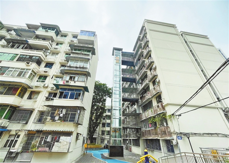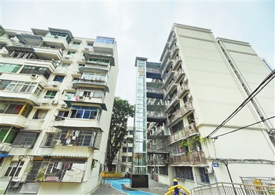 加装电梯后的二普小区居民楼。记者 晏艳辉 摄