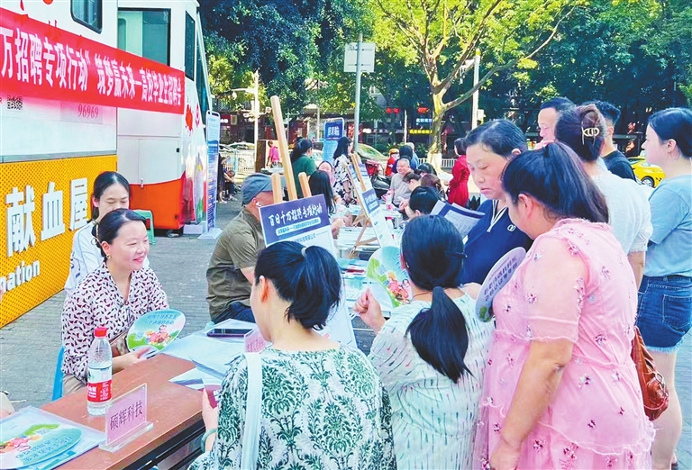 本报讯 (记者 姚延洋)9月5日,由区人力社保局、石油路街道主办,区就业和人才中心、石油路街道劳动就业和社会保障服务所承办的“百日千万招聘专项行动”筑梦赢未来—高校毕业生招聘会在渝中区就业服务驿站举行。