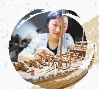 如今,周南馨一手学技艺,一手管推广,她希望重庆周氏古船模型制作技艺这项非物质文化遗产被更多人看到、了解和喜欢,于是尽可能地参加非遗文化活动,身体力行宣传这项文化;想方设法地研发各种相关文化产品,让更多人领略非遗之美。“重庆周氏古船模型制作技艺已经不仅是我们周家祖祖辈辈的传承,更是重庆市非物质文化遗产。我要用我的努力,把它传承下去,让它绽放出时代光彩。“