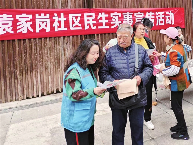 11月30日,袁家岗社区组织80余名居民开展民生实事宣讲活动。工作人员讲解了民生实事各项内容,对居民感兴趣的社区老年食堂等相关问题一一解答,并收集了居民对修建食堂、小区改造的建议意见。