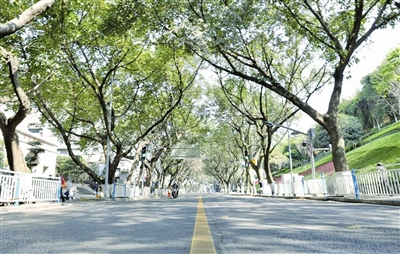 此外,中山四路道路两侧规划建设绿化带,设置黄葛树花台、中四路花境及垂吊花盆等,在曾家岩五星广场、曾家岩广场等城市阳台区域摆放鲜花,增花添彩,沿线绿地内植物群落结构良好,植被丰满,层次分明,季相丰富,生态效应突出,景观效果好。适地栽植黄葛树,规格一致,间距适宜,枝下高度满足交通要求。同时推行生态绿化方式,人行道路硬质铺装采用透水性材料,与节约型、生态型园林绿化建设理念的要求相符合。