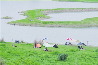 焕然一新的城市公园,环境优美,花开鸟鸣。市民们就地开启“微度假”,去水岸边体验自由自在。帐篷、天幕、野餐垫齐上,小吃饮料摊开摆放,就是一方肆意天地。绿色生态的滨水步道,市民跑步健身、漫步闲谈,就是一路惬意随性。“大手”牵着“小手”,走近江边,捡喜欢的鹅卵石,摆成“独立设计”的小院子,玩浅滩泥沙“浅尝”戏水乐,就是一段亲水时光。新婚的爱人在摄影师的指导下变换各种姿势,每一次“咔嚓声”,就是一份难忘的甜蜜记忆……