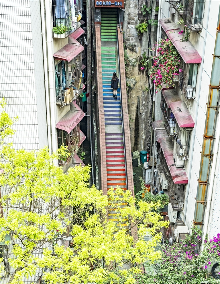 重庆的街道路窄,坡陡,弯道多。城市依山而建,临江而筑,坡多路陡,随处可见拾级而上的石梯街,很多街巷不通车或只有单行道。为了避开坡道、弯道,解决主城交通拥堵难题,穿隧、架桥改走地下。现在地下交通特别发达,地下轨道交通,甚至是高铁、高速公路,一不小心就从地下某个道口冒出来,给你一个意想不到的惊喜。在山城,一栋楼说不定就是一座立交桥;一座立交桥说不定就有几层楼高,最著名的就是黄桷湾立交,上下5层,有20个匝道,8个方向上下道,走错一个道,可能就是“重庆一日游”。