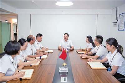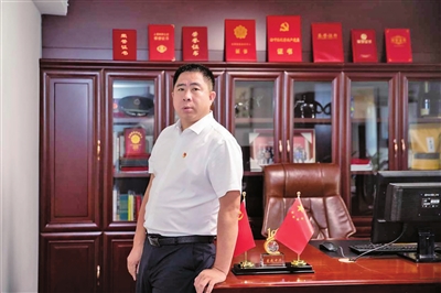 王万兵的办公桌上,右手边插着五星红旗和党旗,左侧企业管理、党建教育等书籍整齐摆放,桌面干净整洁。采访中,他从书柜里拿出厚厚一摞获奖证书。