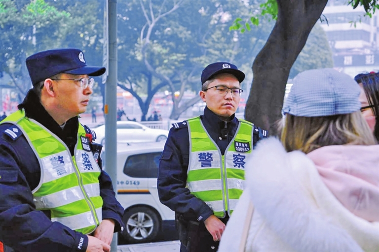 “我的行李落在网约车上了。司机忙着接单,不愿意送还。”路旁,两位女乘客焦急地向民警黄攀寻求帮助。了解情况后,黄攀主动联系到司机,向双方提出处理意见,“其一,自行协商收费标准,乘客通过付费让司机将行李送回;其二,司机就近将行李存放于附近派出所,乘客自己去取。”