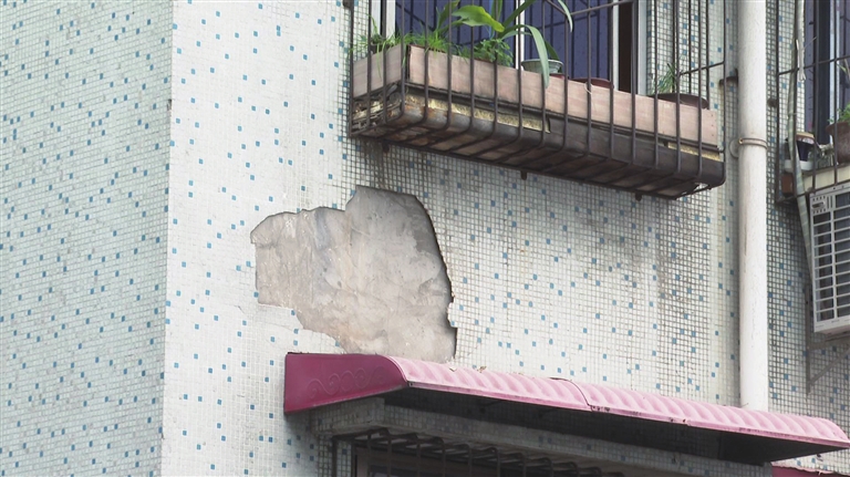 本报讯 (记者 李佳佳)近日,记者接到市民反映,位于两路口街道枇杷山正街70号至88号的居民楼外墙瓷砖脱落现象时有发生,居民们经过楼下都心有余悸,希望街道和有关部门能解决该安全隐患。