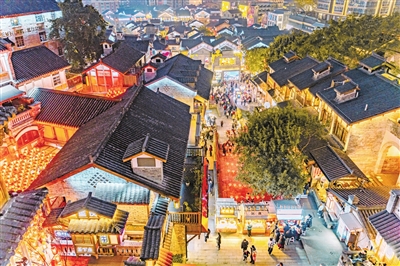 据了解,2021年9月30日,历时近5年迭代升级,十八梯传统风貌区建成开放。作为重庆28个传统风貌街区中5个试点先行区之一,十八梯传统风貌区以“活化母城记忆”为核心,以“真山城+老重庆+潮渝州”为吸引力,依托重庆“母城”文化旅游资源,保留“七街六巷”城市肌理,规划摩登复古街、社交第三空间、格调生活剧场、24小时放逐基地四大特色区域,力争展现重庆八百年历史文化生活全景,打造强体验性文旅商业示范空间。项目引进朱炳仁铜雕博物馆、渝丹凤银楼、芭蜂坚果、酷乐潮玩、张小泉、人民咖啡馆等众多知名品牌,(下转2版)(上接1版)整体入驻商户超176家,年度客流量达2400万人次,成功获评国家级旅游休闲街区、国家级夜间文化和旅游消费集聚区、国家级非遗旅游街区,成为重庆文商旅融合发展的“金名片”。