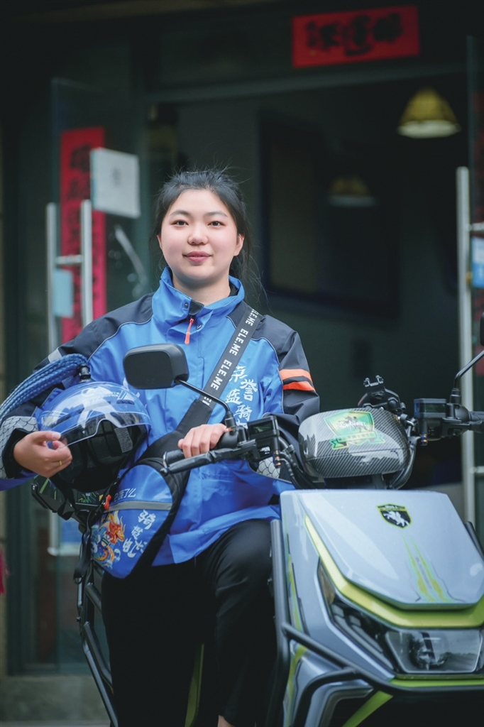 2024年12月12日,廖泽萌成为了一名年轻的共产党员,她加入“先锋骑士”志愿服务队,发挥走街串巷优势,积极参与“亮身份·当先锋”系列活动,为空巢老人、困难群众提供跑腿办事、爱心寄递等服务;带动其他快递小哥成为“流动网格员”,协助开展网格治理、文明创建、反诈宣传,以“随手拍”直报治安、安全、环卫等问题线索,实现从“治理对象”向“治理力量”转变。