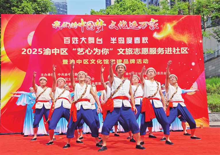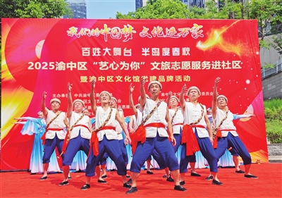 本报讯 (记者 黄清娴)4月10日至11日,“我们的中国梦 文化进万家”“百姓大舞台 半岛度春秋”2025渝中区“艺心为你”文旅志愿服务进社区暨渝中区文化馆党建服务品牌活动先后在化龙桥街道重庆天地湖畔、朝天门街道棉花街体育文化公园举行,来自区文化馆的20支群文队伍依次亮相,带来合唱、舞蹈、京剧、时装秀、乐器合奏等文艺表演,为居民送上了精彩的文艺大餐。