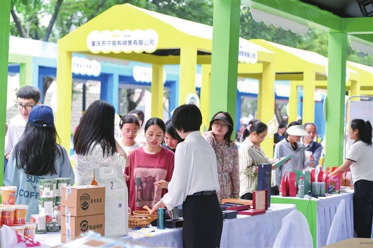 在贺龙广场主会场,“渝中优品快闪展”与“巫溪好物重庆行快闪展”双城展区联袂亮相。