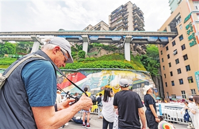 面向外国游客,渝中推出“有礼、有趣、有戏、有味、有yeah”五大主题200余个新项目新场景,不断丰富科技、非遗、赛事、漫步等入境游产品供给,选择在渝中“过夜游”“美食游”“购物游”的外国游客日益增多。
