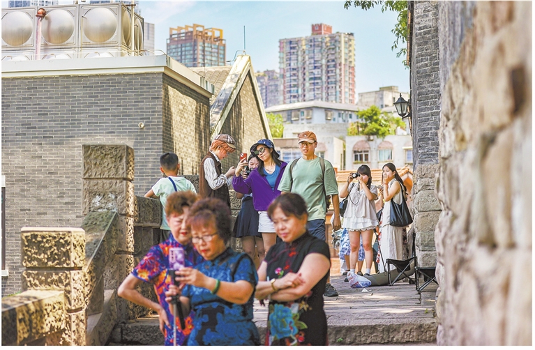 马鞍山片区改造负责人、渝中区文旅发展集团战略发展部经理李晓路说,在马鞍山项目的改造过程中,小到一棵树、一块墙砖,都尽量延续这种思路。“你看这棵古树,当年差点被私搭的棚子闷死,现在特意留了片空地让它扎根。”他说,“就想让走在这儿的人,能踩着老重庆的纹路。”