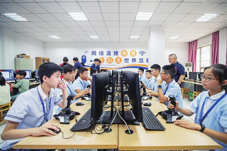 起飞、爬升、滑翔、急降……记者在趣味竞速飞行比赛现场看到,参赛选手们个个有备而来,完成线上赛事系统登录后,熟练地操作摇杆,精准完成一系列模拟飞行任务,将青少年对科技和蓝天的向往展现得淋漓尽致。
