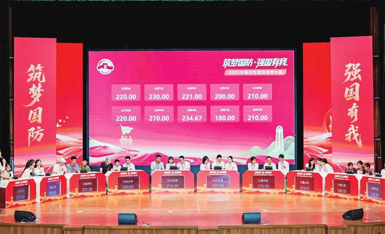 本报讯 (记者 徐潇)9月23日,“筑梦国防·强国有我”2025年重庆市国防素养大赛颁奖仪式在渝中举行。渝中区以总分全市第一的成绩,获团体比赛一等奖。市委宣传部、市教委、市退役军人事务局、重庆警备区、团市委,区委宣传部及重庆新华出版集团等主承办单位相关负责人出席颁奖仪式。