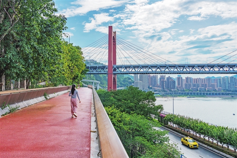 更让人惊喜的是,这段步道上还设有一条连接红岩革命纪念馆的连接道。记者沿着连接道步行十余分钟,便抵达了纪念馆门口。一边是波光粼粼的嘉陵江、充满现代气息的都市风光,一边是承载着红色记忆的革命纪念馆,短短一段路,仿佛穿越了时空,让人在自然与历史的碰撞中,收获截然不同的体验。