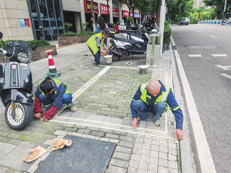 据悉,近一年来,永嘉路社区摩托车、电动车数量增多,且社区原有停车位因长期使用,出现标线严重磨损、指引标识模糊不清的问题,导致车辆乱停乱放现象愈演愈烈。无序停放的车辆挤占了人行通道,给居民日常出行带来极大不便,成为商户与居民普遍反馈的民生痛点,亟待解决。