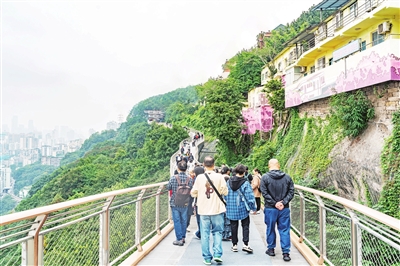 如今,建设完毕的栈桥成了半山崖线步道一道亮丽的风景线,串联起李子坝抗战遗址公园、鹅岭公园、佛图关公园等五个城市公园及近30个文化资源点,方便市民、游客一站式、一条线打卡众多景点,乘兴而来、尽兴而归。