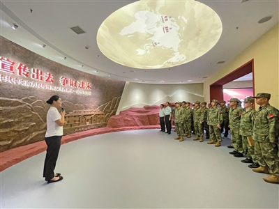 渝中红色资源丰富,为延续红色基因,区人武部不仅常态化组织人员前往红岩革命纪念馆等革命旧址开展主题实践活动,还开设思想政治教育线上“微课堂”,精心打造以抗战精神、红岩精神等为主题的文化墙、阅览角,布设“全国八路军办事处抗战历史陈列馆”、“红岩魂”微展厅等教育场景,以红岩精神的熏陶涵养,营造“时时受熏陶、处处是课堂”的浓厚氛围,强化兴武强武的责任担当。