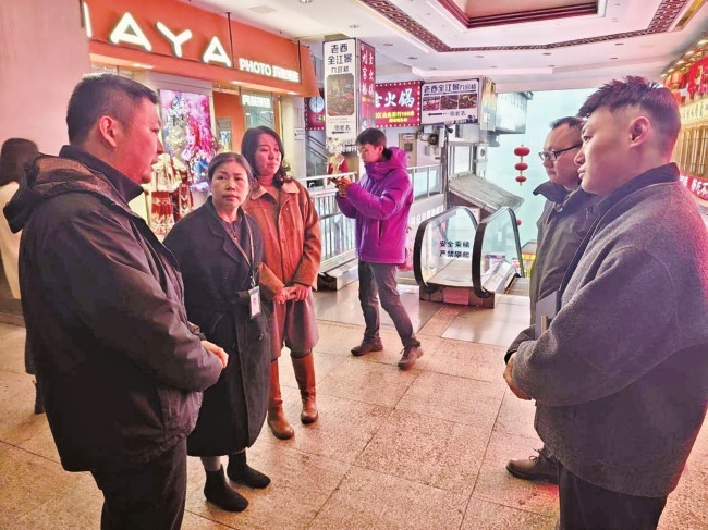 区文化旅游委会同相关部门对洪崖洞景区电梯进行现场踏勘。检查人员根据相关工作安排,叮嘱景区负责企业落实全面检查电梯、扶梯等特种设备,严格核实维保记录与人员履职情况,并持续跟进各项安全措施的落实进展。