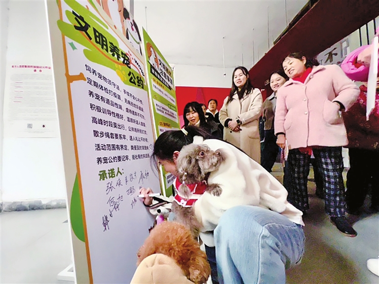 活动现场,居民们共同宣读了《文明养宠公约》,现场还设置了文明知识互动转盘和“牵犬绕杆跑”比赛。“活动让狗狗们有机会一起玩耍,也增进了宠物主人之间的互动,特别开心!”居民廖正兰说,今后将在日常生活中自觉践行文明养宠公约,推动文明养犬新风尚在社区形成共识。
